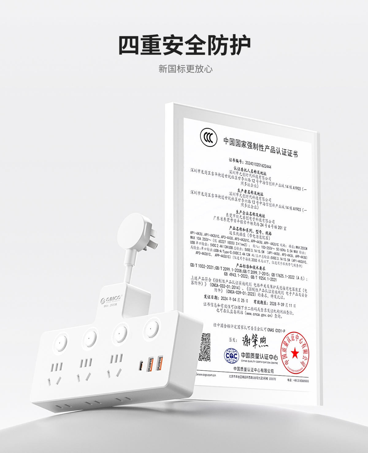新國標3C6孔USB分控排插