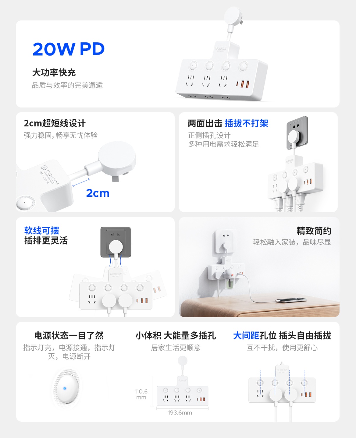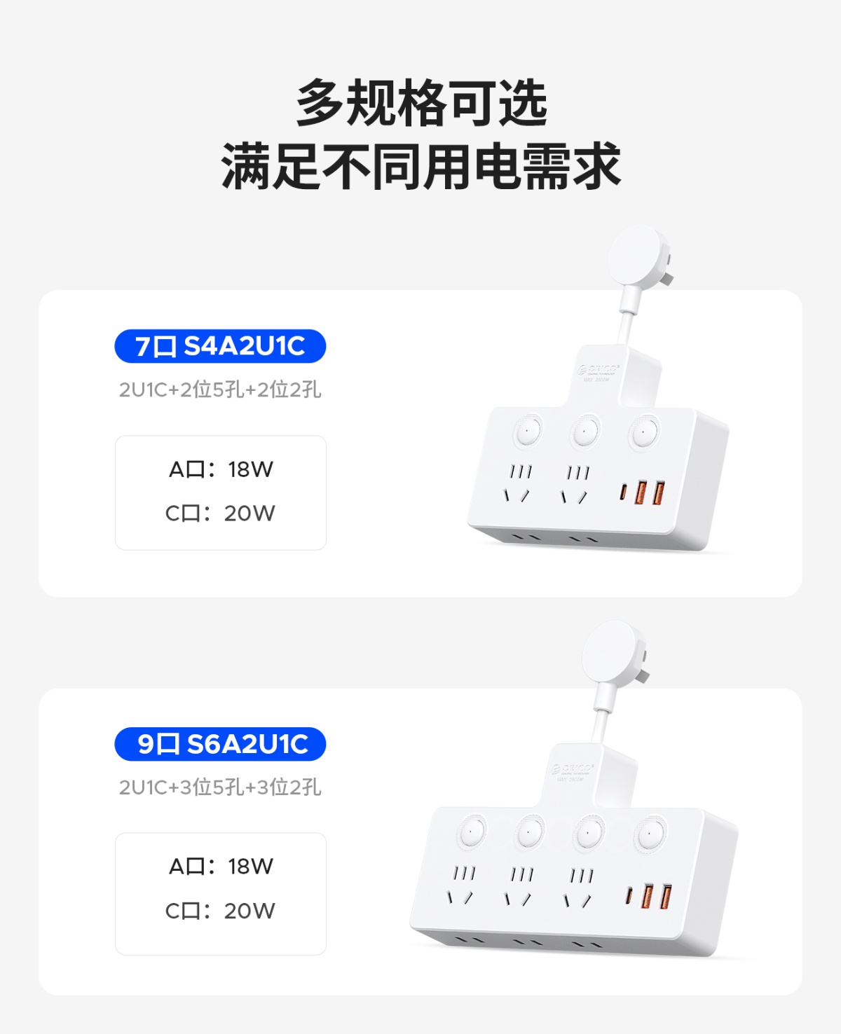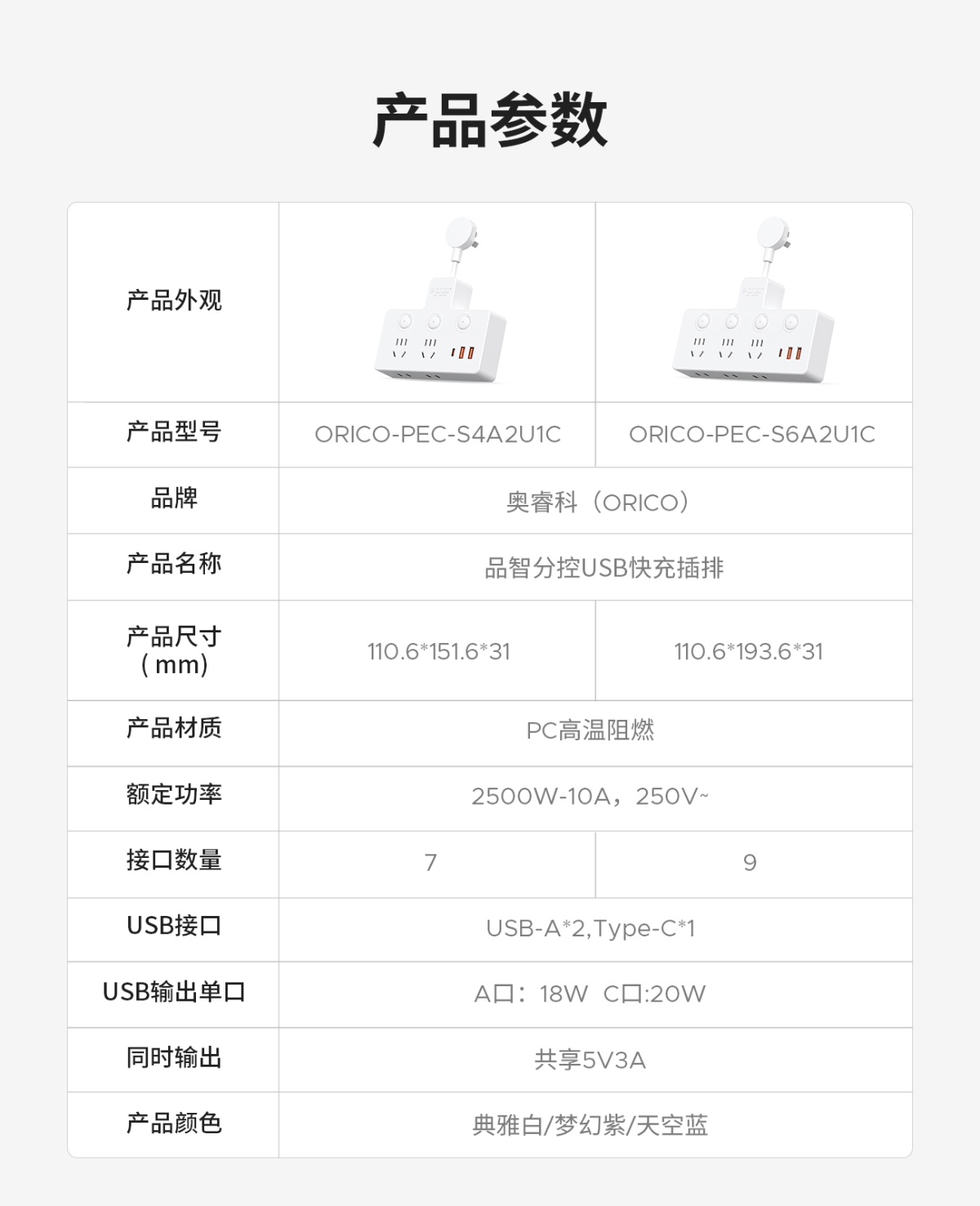 5孔AC*3,2孔AC*3,USB-A*2,Type-C*1