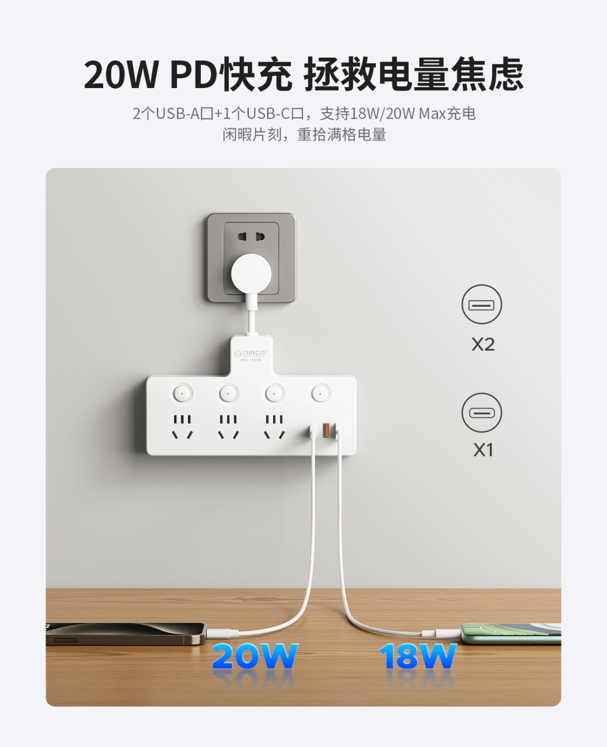 A口:18W;C口:20W