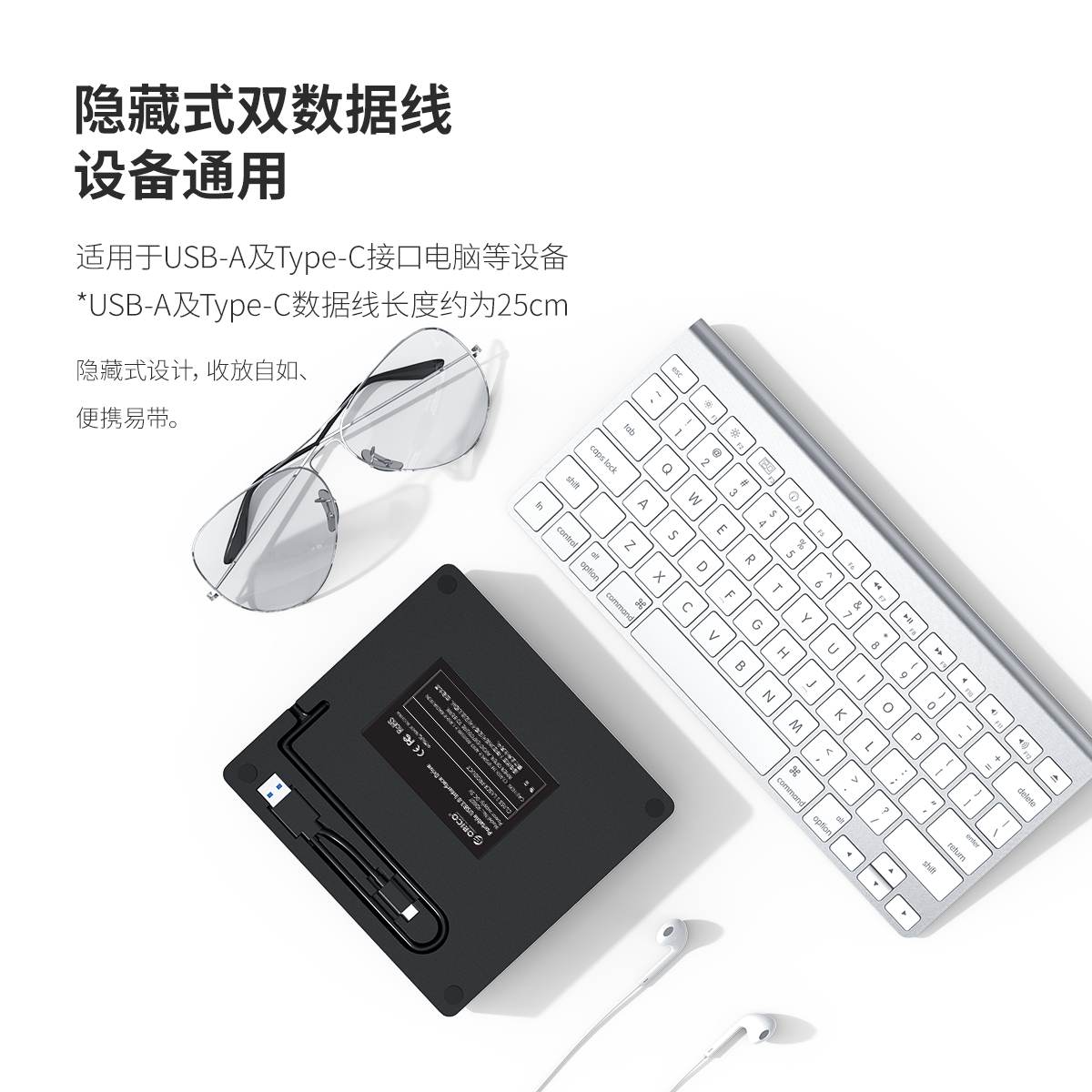 USB3.0體驗高速讀碟,隱藏式雙數據線設備通用,免驅,即插即用,進口機芯,靜音設計。