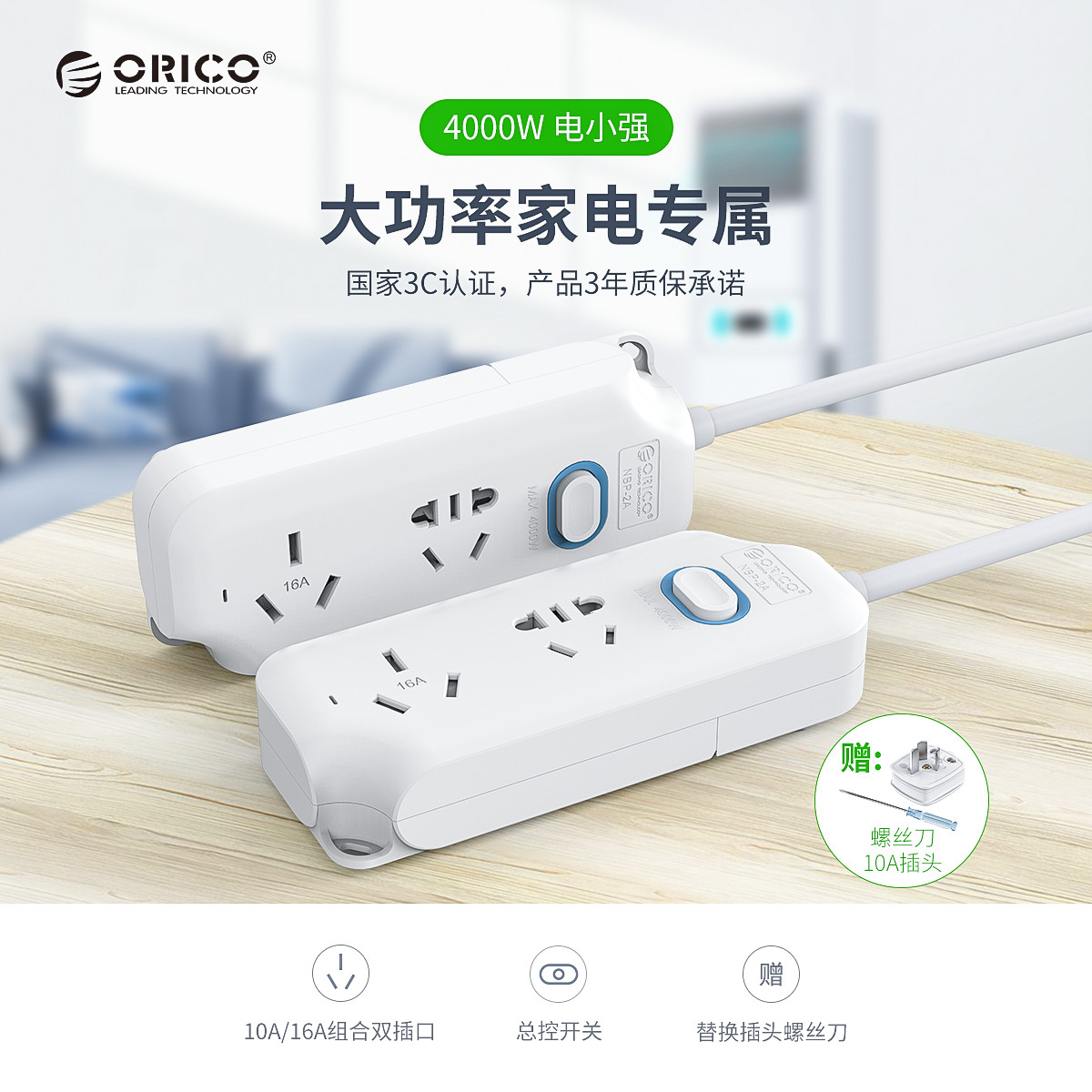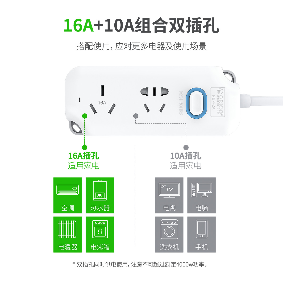 電小強(qiáng)4000W大功率雙AC口排插