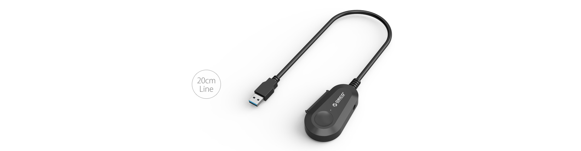 ORICO 25UTS采用連體式數據線設計,數據線長帶接頭20cm,線材直徑達6mm,為數據的穩定傳輸作保障。