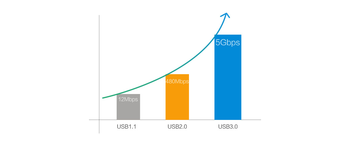 USB3.0作為新的高速接口擁有比USB2.0快十倍的數據傳輸能力,為我們的數碼外設擴展提供了穩定的傳輸方案,在這個大數據海量信息頻繁交互的年代,USB3.0為您節省了更多時間成本。