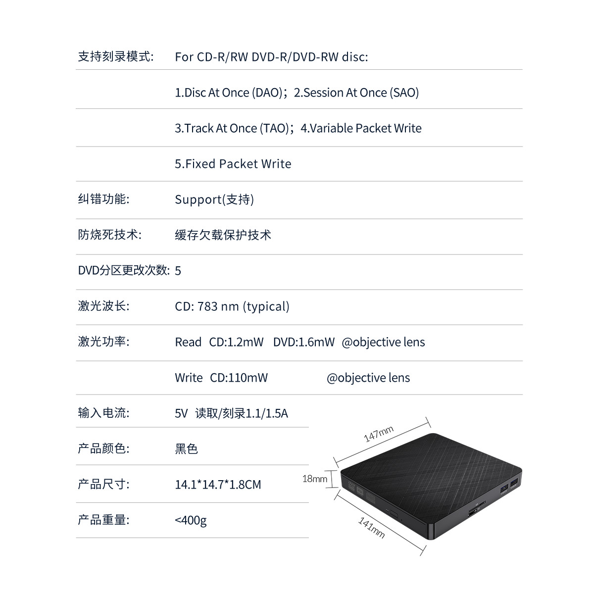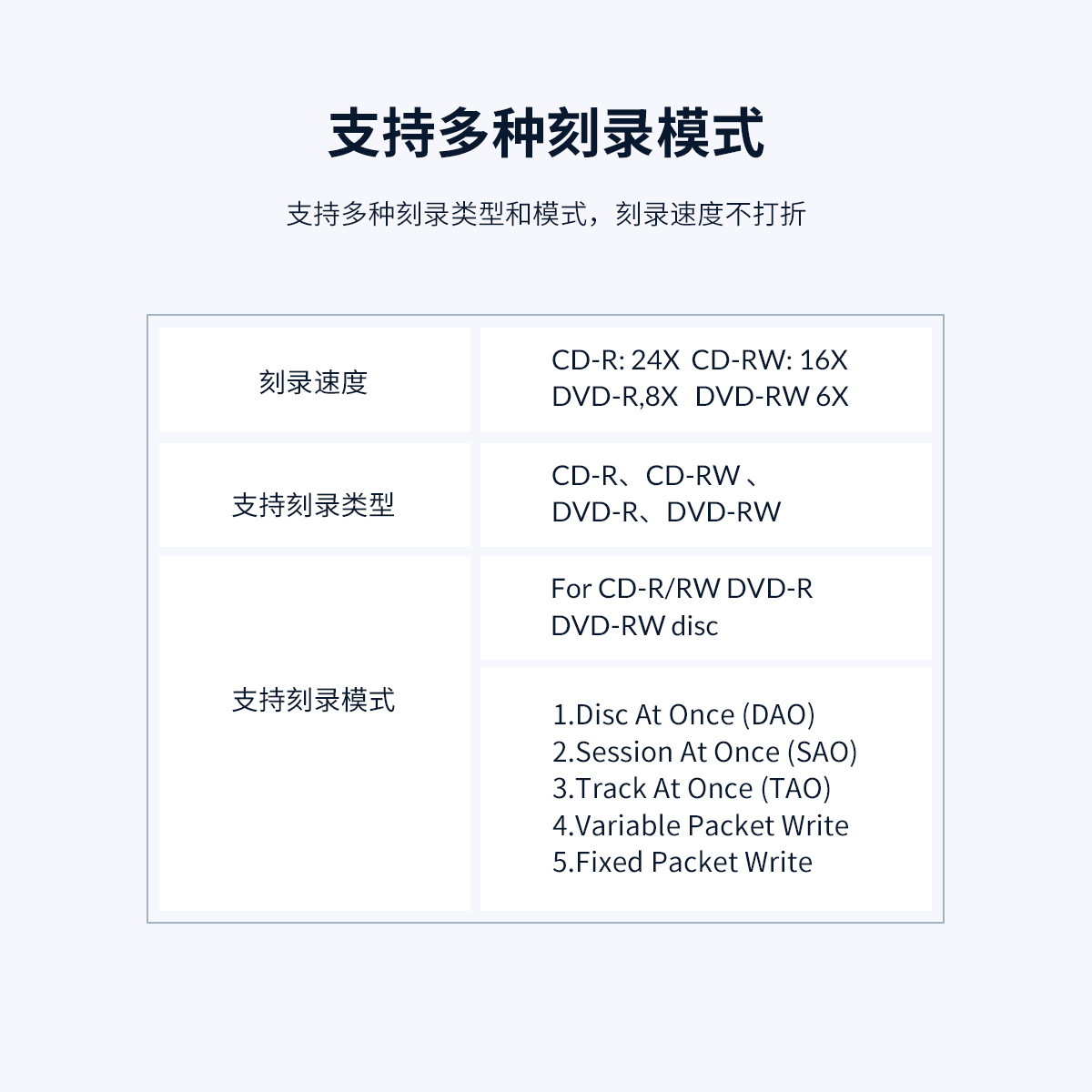 • 支持刻錄類型