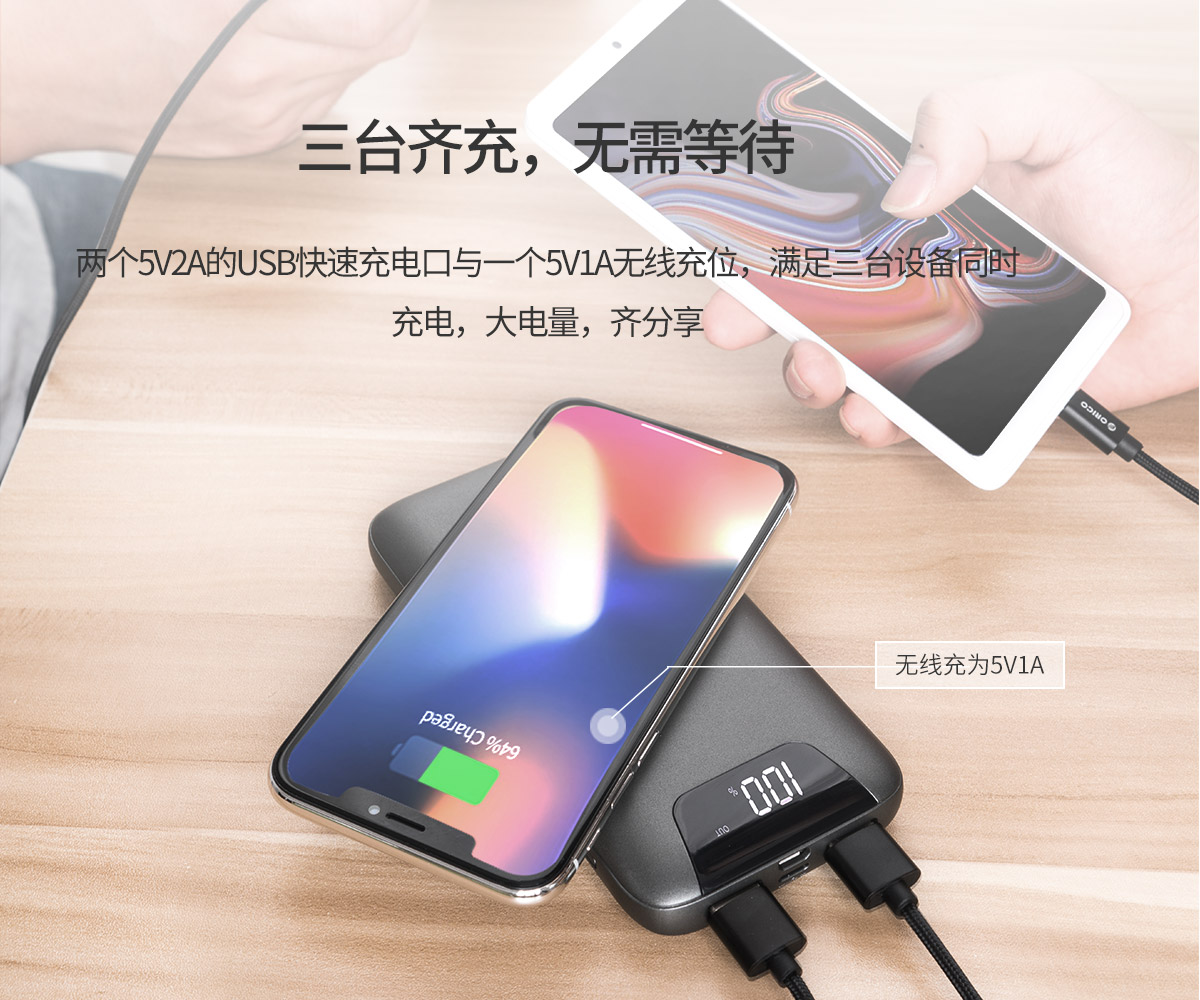 無線充移動(dòng)電源,10000mAh大容量,三臺(tái)設(shè)備可以同時(shí)充電