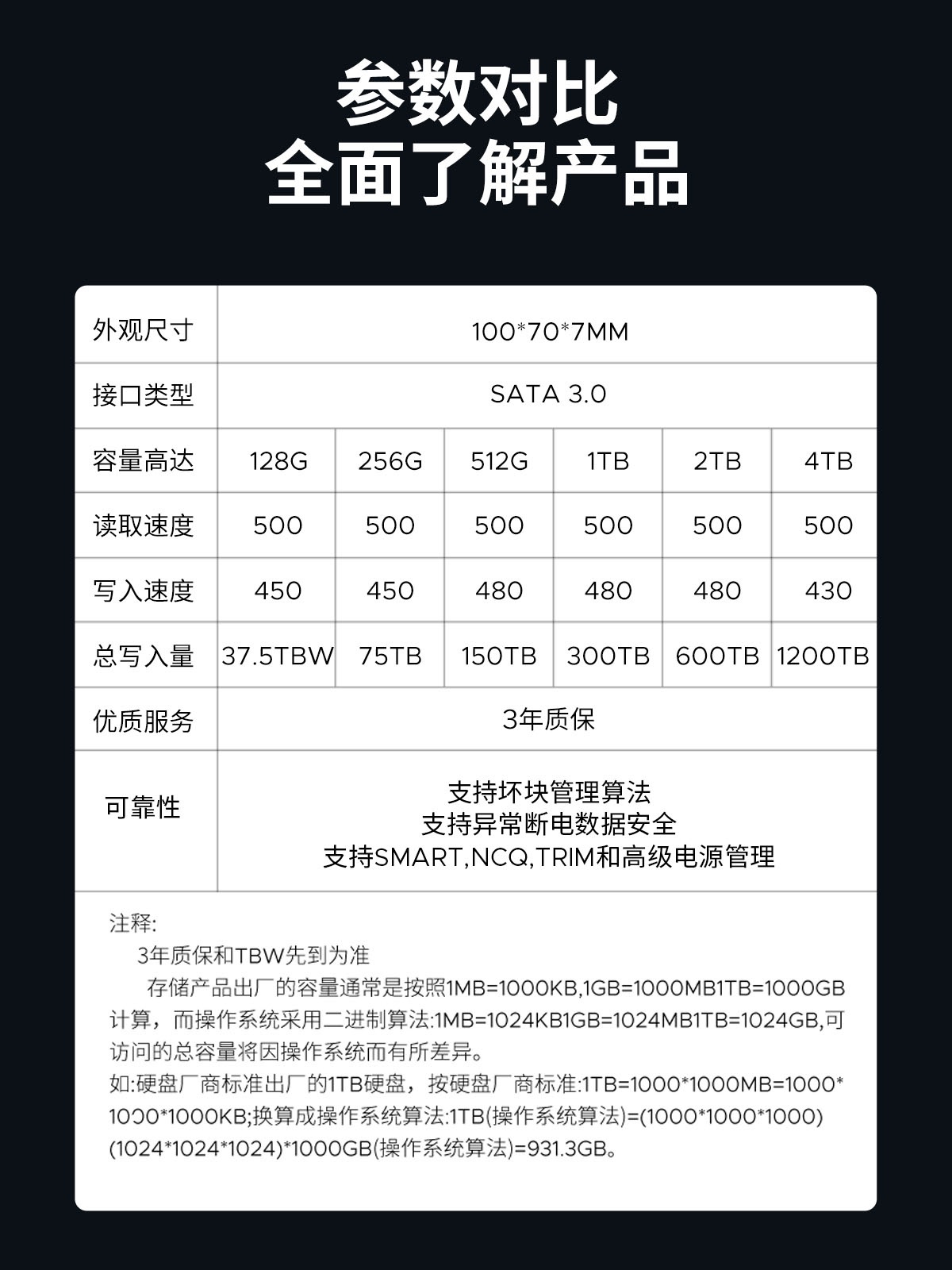 128GB/256GB/512GB/1TB/2TB/4TB