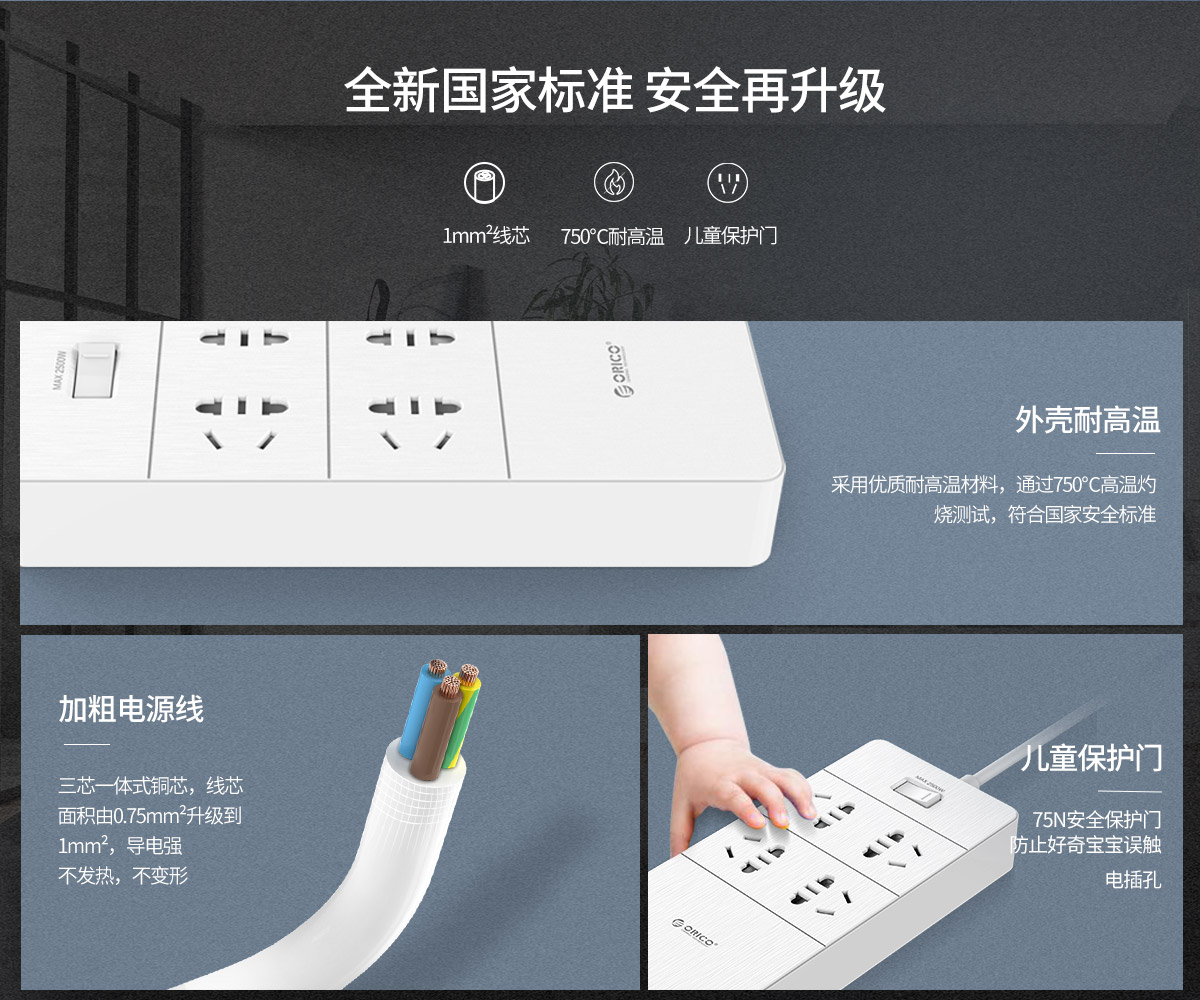 木紋外觀,新國(guó)標(biāo)便攜桌面式排插,辦公智能排插,高溫環(huán)保材料,底座硅膠防滑