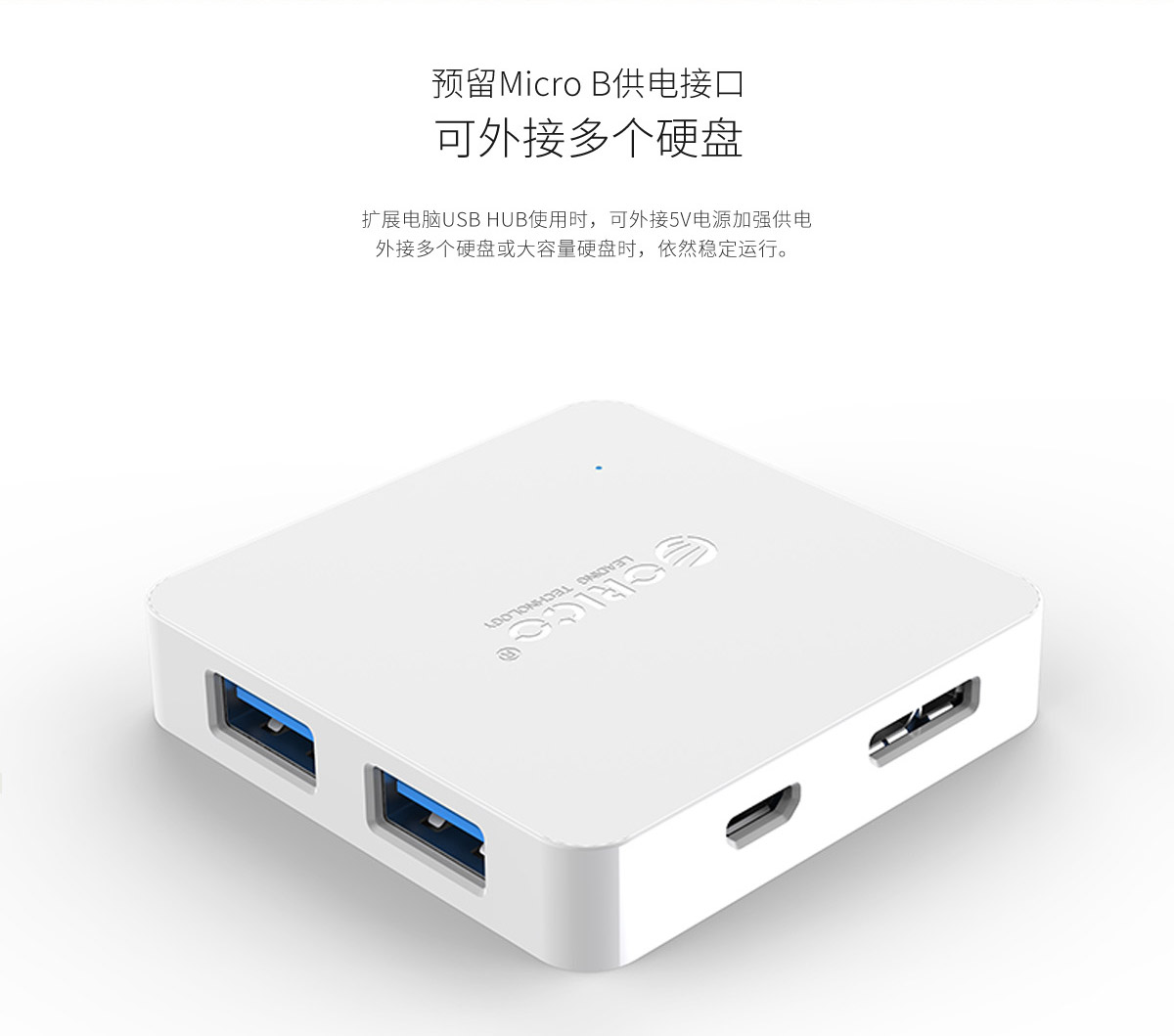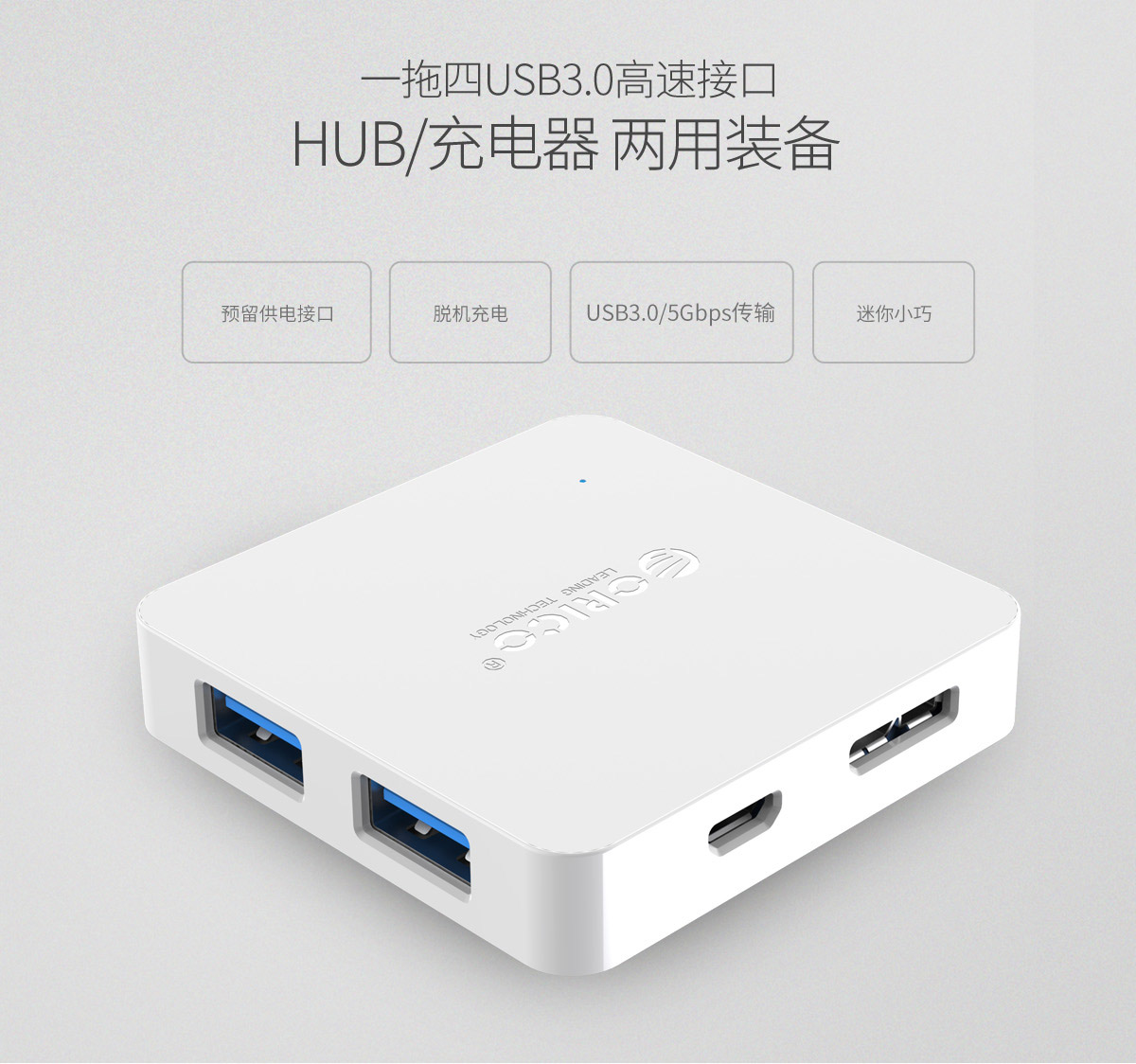 4口USB3.0方形桌面集線器,預留供電口