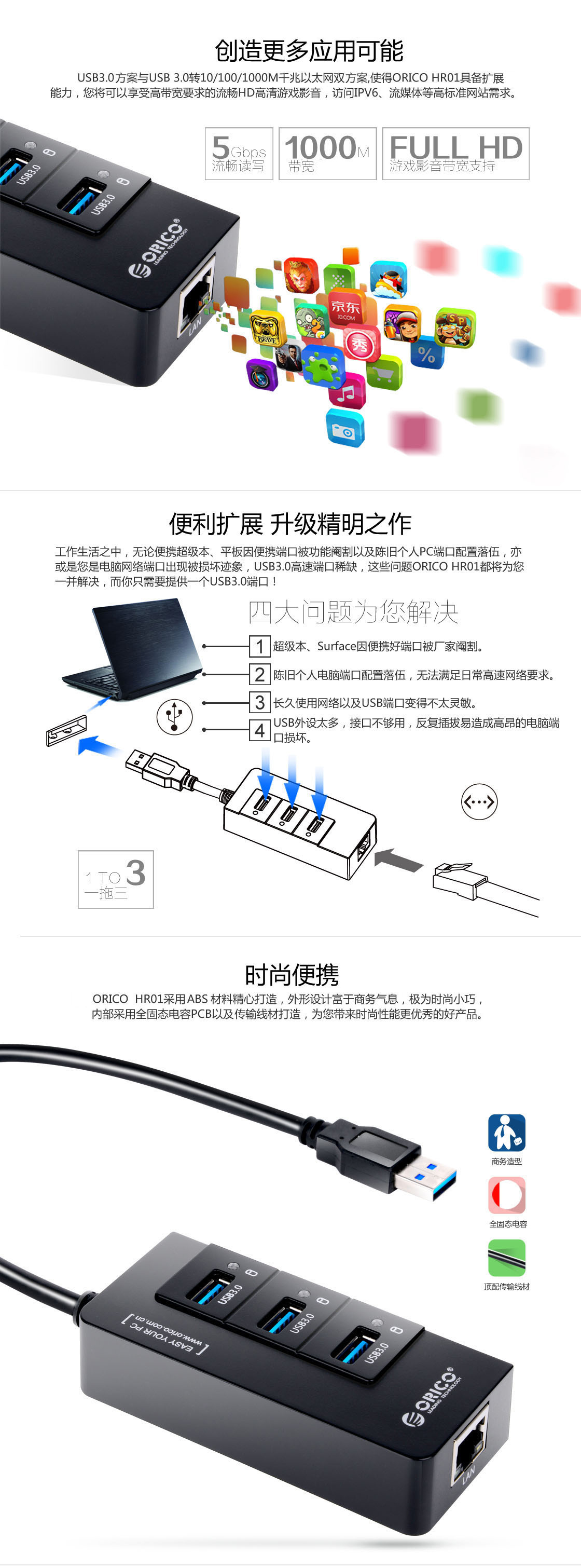 USB3.0千兆網(wǎng)絡(luò)集線器,USB供電