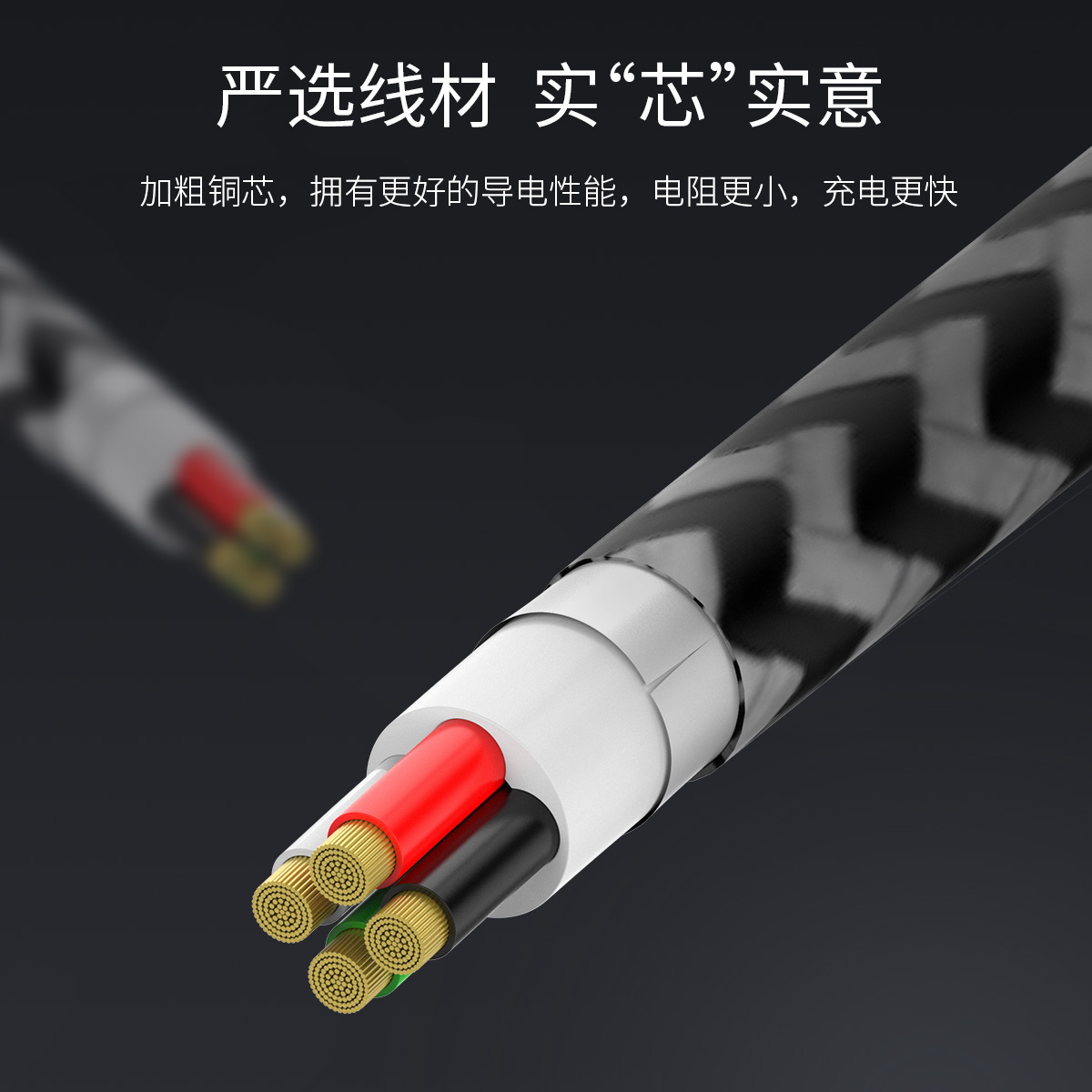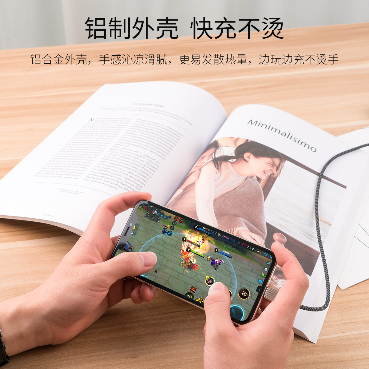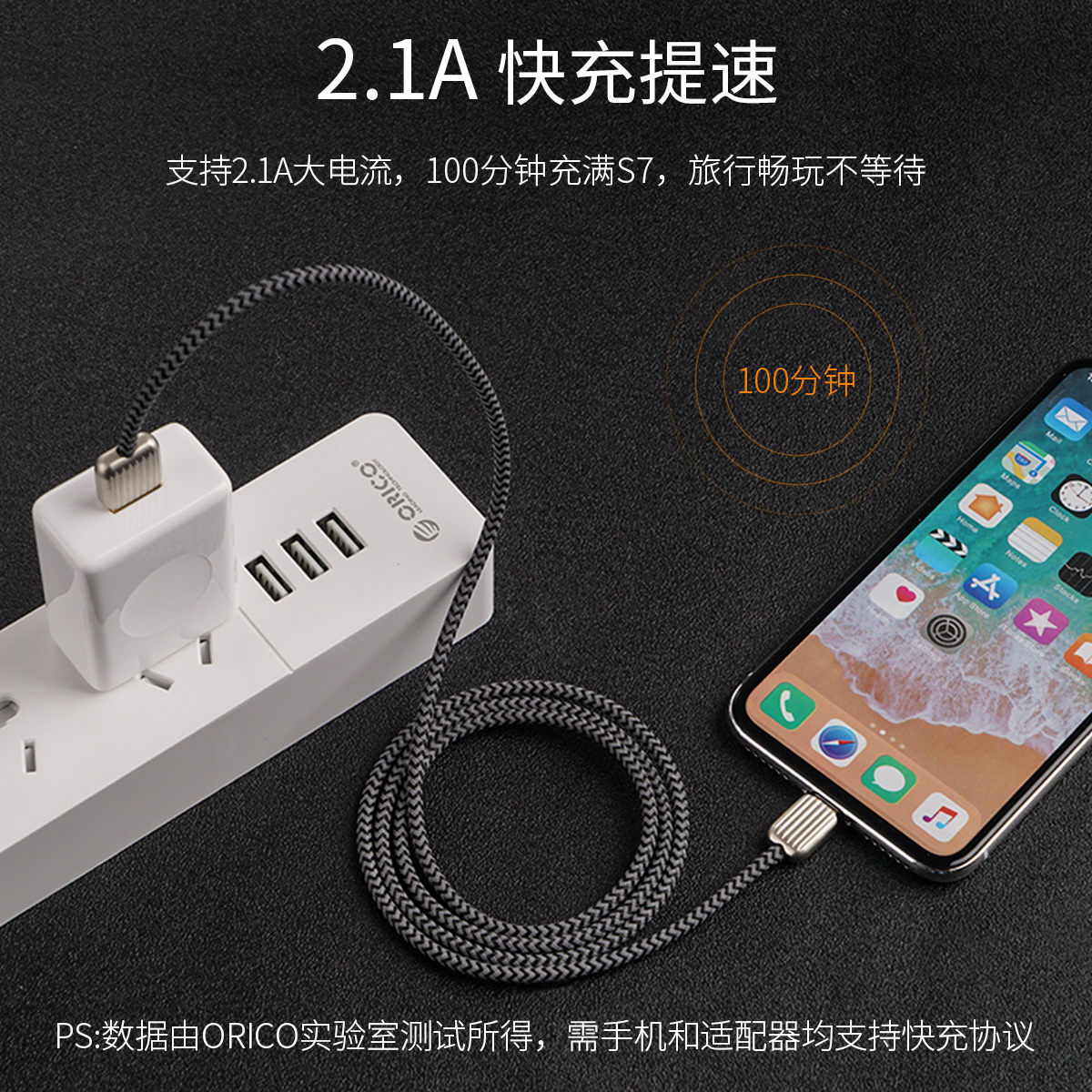 支持2.1A大電流,鋁合金外殼不發燙,加粗銅芯,電阻小,編織線身