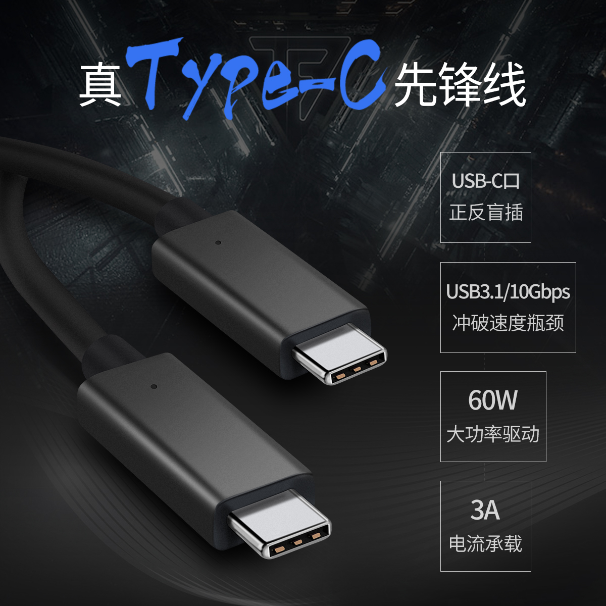Type-C轉Type-C充電數據線(E-mark芯片加速款)