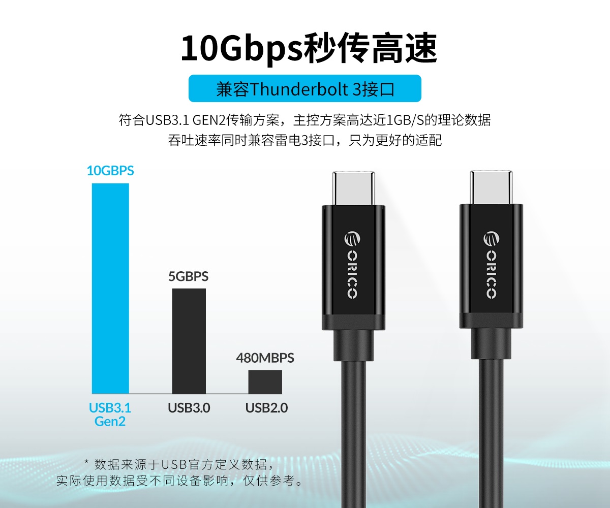 符合USB3.1 GEN2傳輸方案,兼容雷電3接口