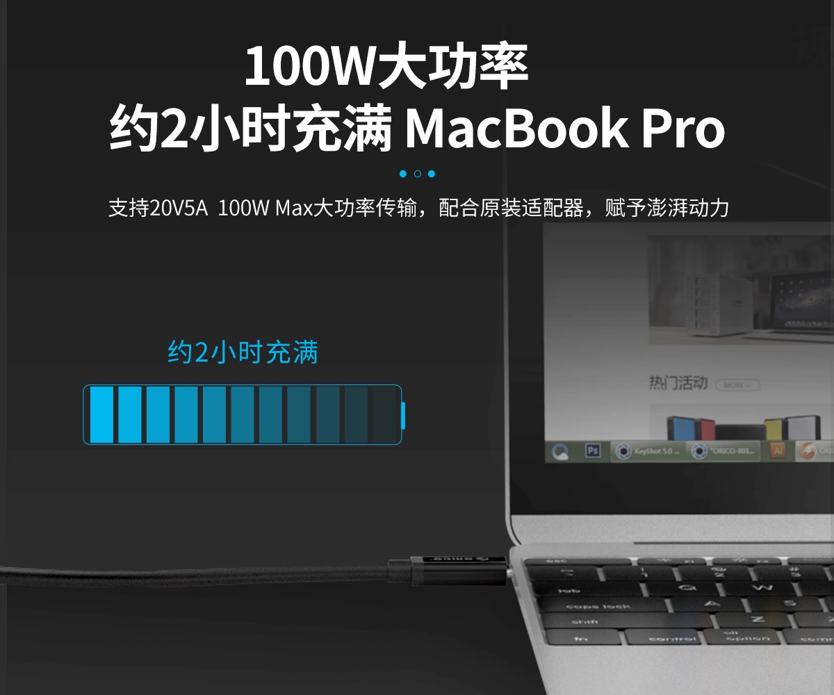100W大功率,約2小時充滿MacBook Pro