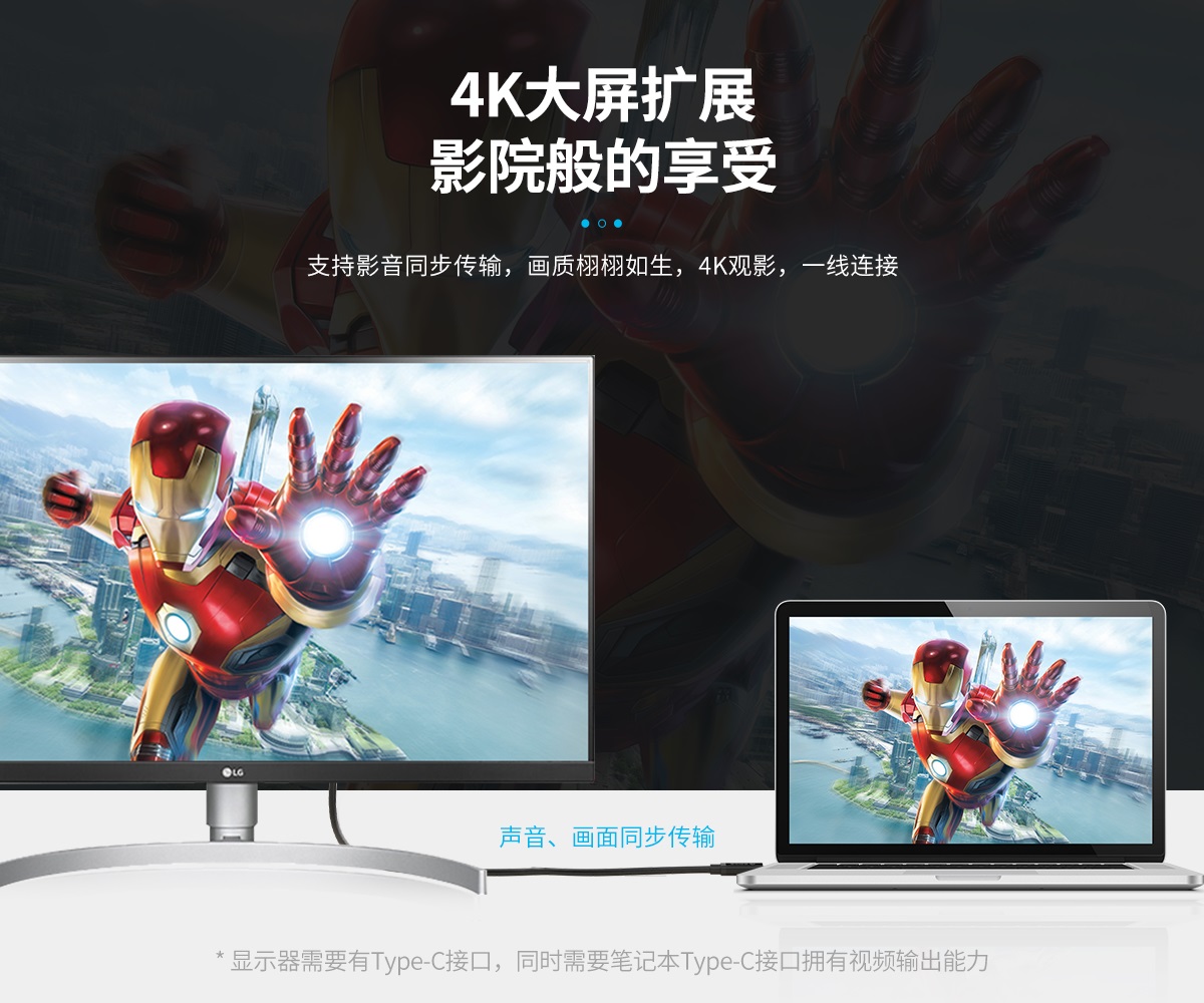 支持影音同步傳輸,4K觀景,一線連接
