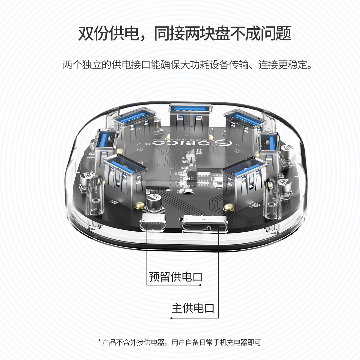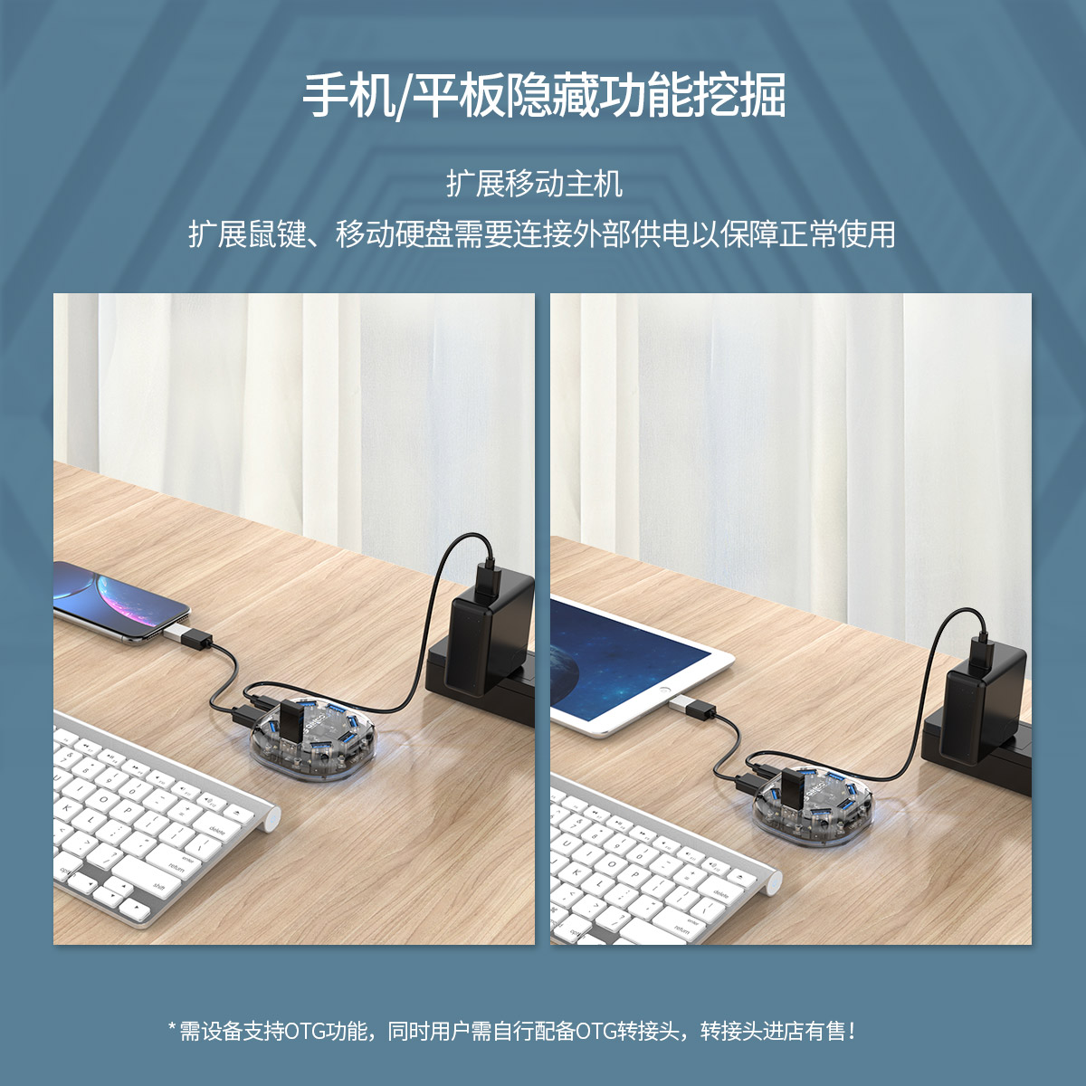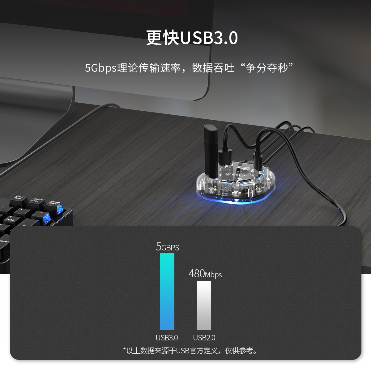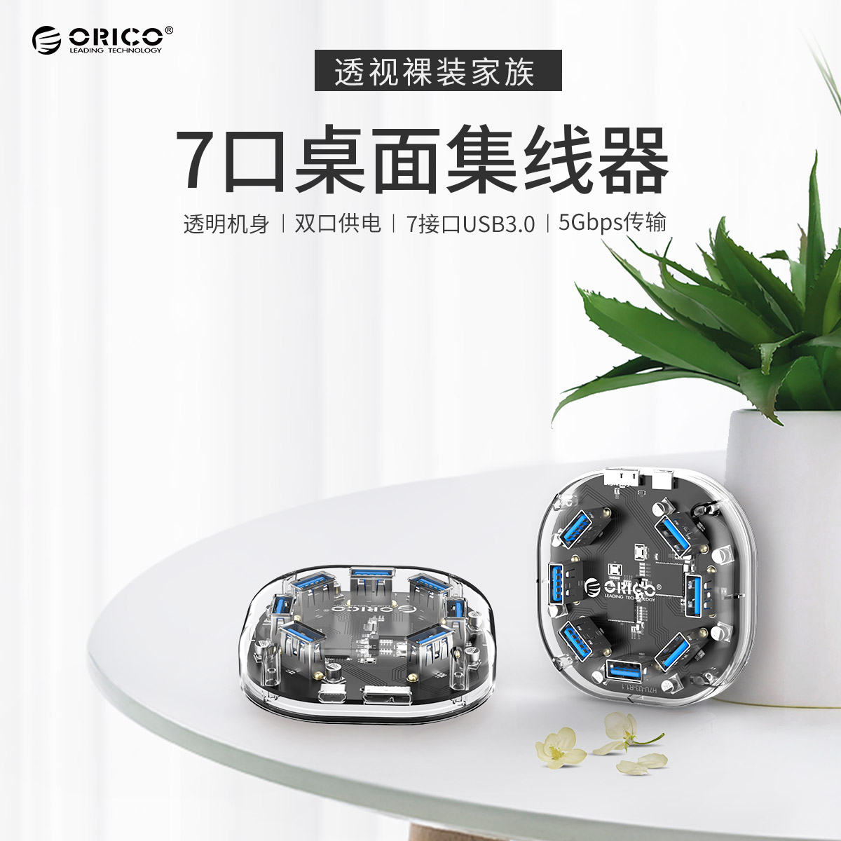 7口USB3.0透明桌面集線器,支持OTG拓展