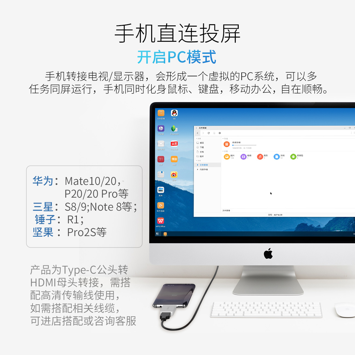 影音視頻高清輸出 小巧便捷 高級轉換芯片 為新型Type-C擴展HDMI接口