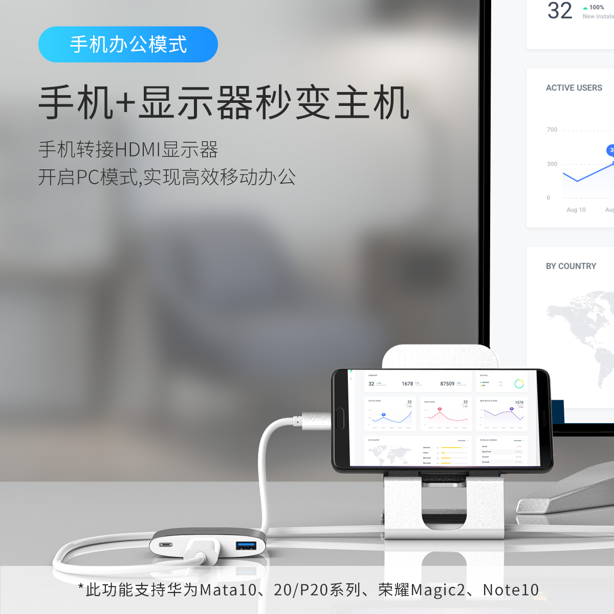 Type-C轉(zhuǎn)HDMI/USB3.0/Type-C三合一擴(kuò)展塢
