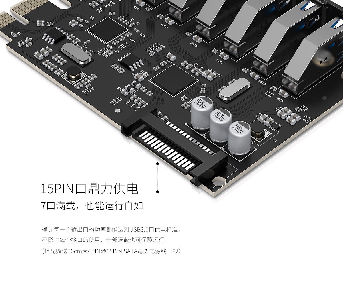 7口擴(kuò)展卡,5Gbps傳輸速度,快速擴(kuò)展,簡(jiǎn)易拆裝