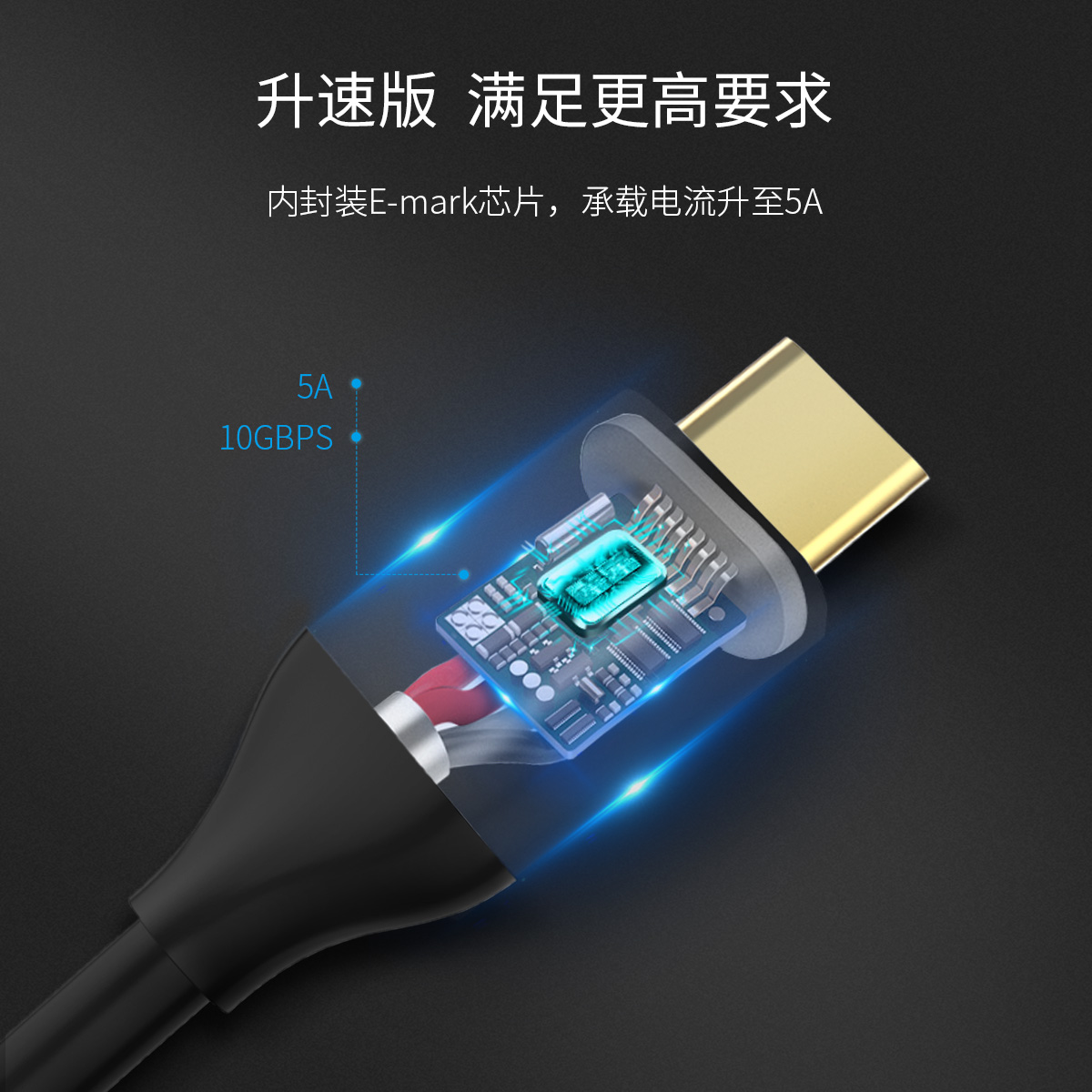 Type-C to C頭,USB3.1協議10Gbps疾速傳輸,5A大電流快充,線材長度可選。