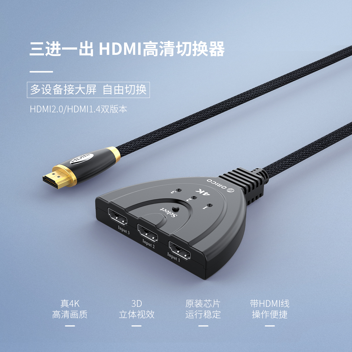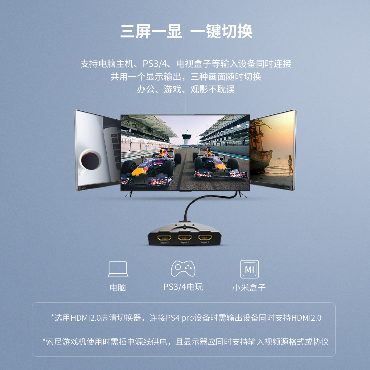 三屏一顯,一鍵切換HDMI2.0延長線影音切換器