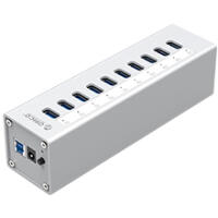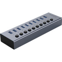 鋁合金10口USB3.0桌面集線器,12V獨立供電