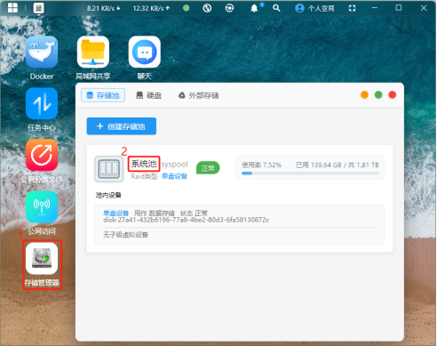 點擊首頁的“存儲池管理器”,進(jìn)入存儲池管理界面,點擊打開“系統(tǒng)池”。